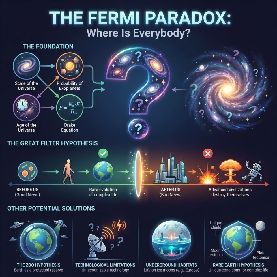 The Fermi Paradox, named after physicist Enrico Fermi, highlights the contradiction between the high probability estimates for the existence of extraterrestrial civilizations and the lack of evidence or contact with such civilizations. Given the immense size and age of the universe, and the relative ubiquity of the physical and chemical laws that govern life on Earth, many scientists and thinkers have argued that the Milky Way galaxy should be teeming with alien life.